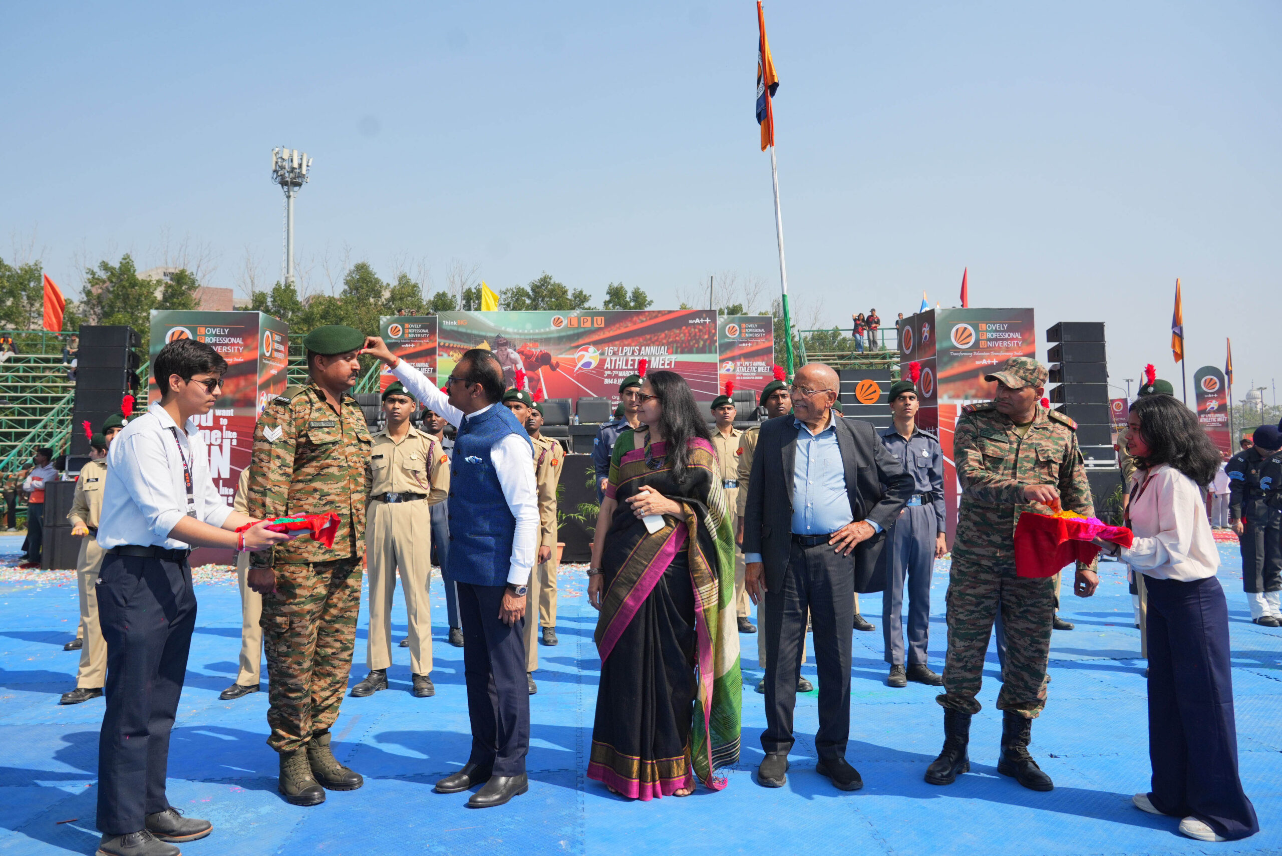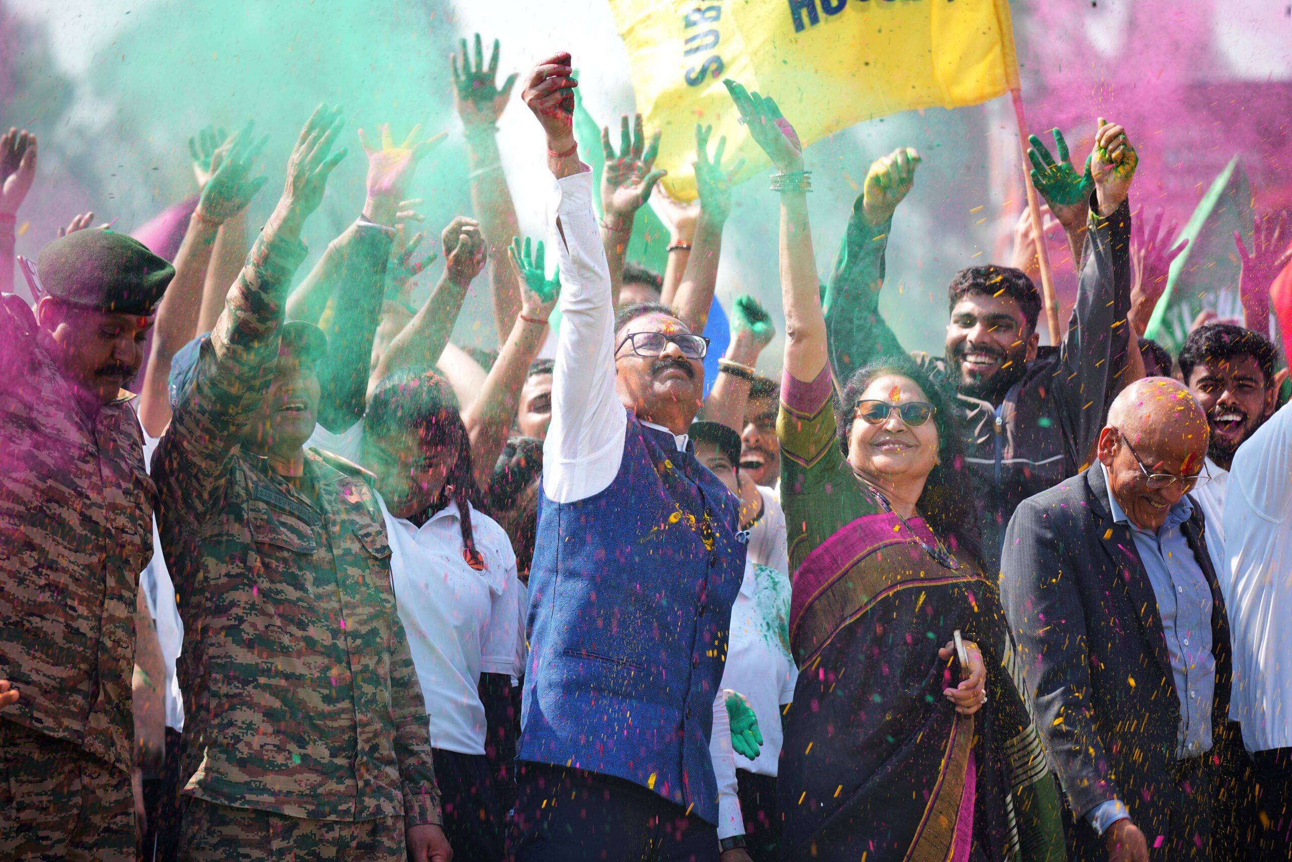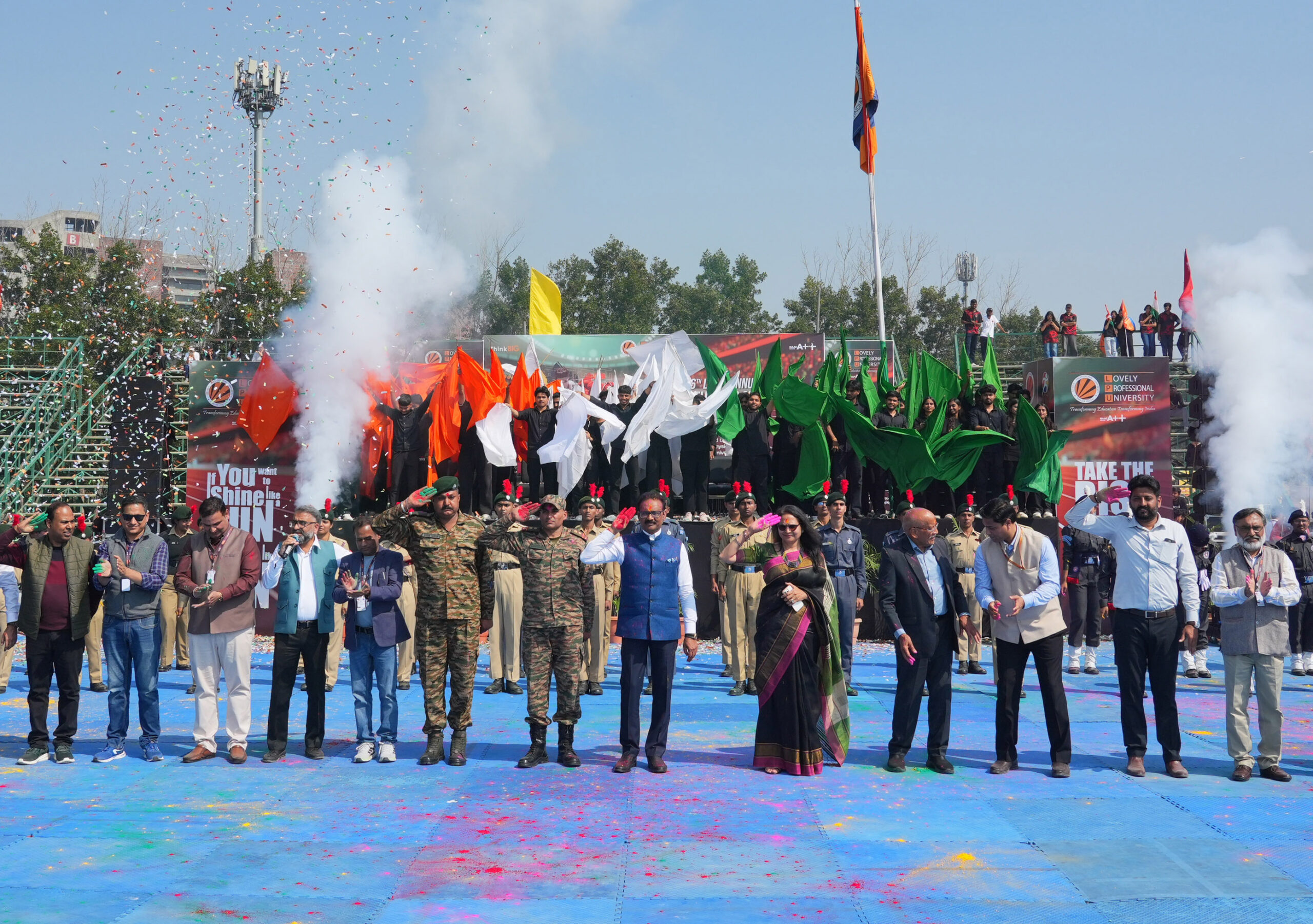 The festival of colors at Lovely Professional University this year carried a profound message of gratitude and national pride. While the campus came alive with vibrant hues, music, and celebration, the spirit of the occasion was dedicated to the brave soldiers who safeguard the nation’s borders. In a heartfelt collective tribute, – “Udayein Ek Mutthi Gulaal Shaheedon Ke Naam”, students, faculty, and staff raised a handful of red gulaal toward the sky, symbolically saluting the armed forces. The gesture served as a powerful reminder that the freedom to celebrate festivals in peace is secured by the courage and sacrifices of the nation’s soldiers.